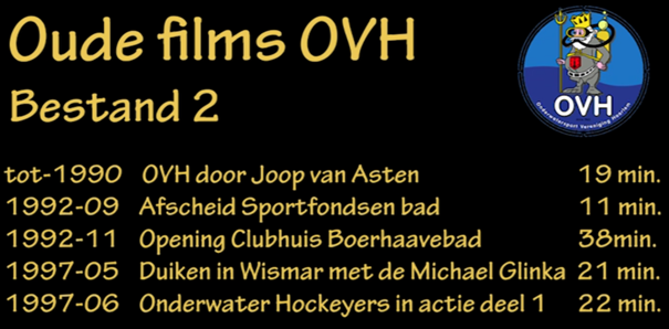 In de afgelopen periode zijn er een aantal films boven water gekomen over het verleden van OVH. Deze films zijn gedigitaliseerd, en door mij nabewerkt. Door veel (oud) leden is gevraagd om deze films te draaien en ter beschikking te stellen. Inmiddels zijn we zover dat dit kan gebeuren.