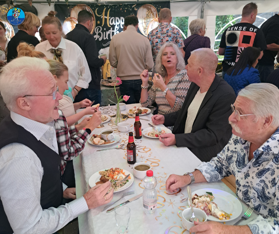 Er werd soepel gedanst en lekker gedronken, kortom iedereen heeft zich prima vermaakt. Ook de afbouw ging vlot, Ralph begon al lekker op tijd met de tent opruimen. Het was een grandioos feest met heel veel dank aan Ria en John, Peter, Marcel en Patricia en de vele helpende handen.