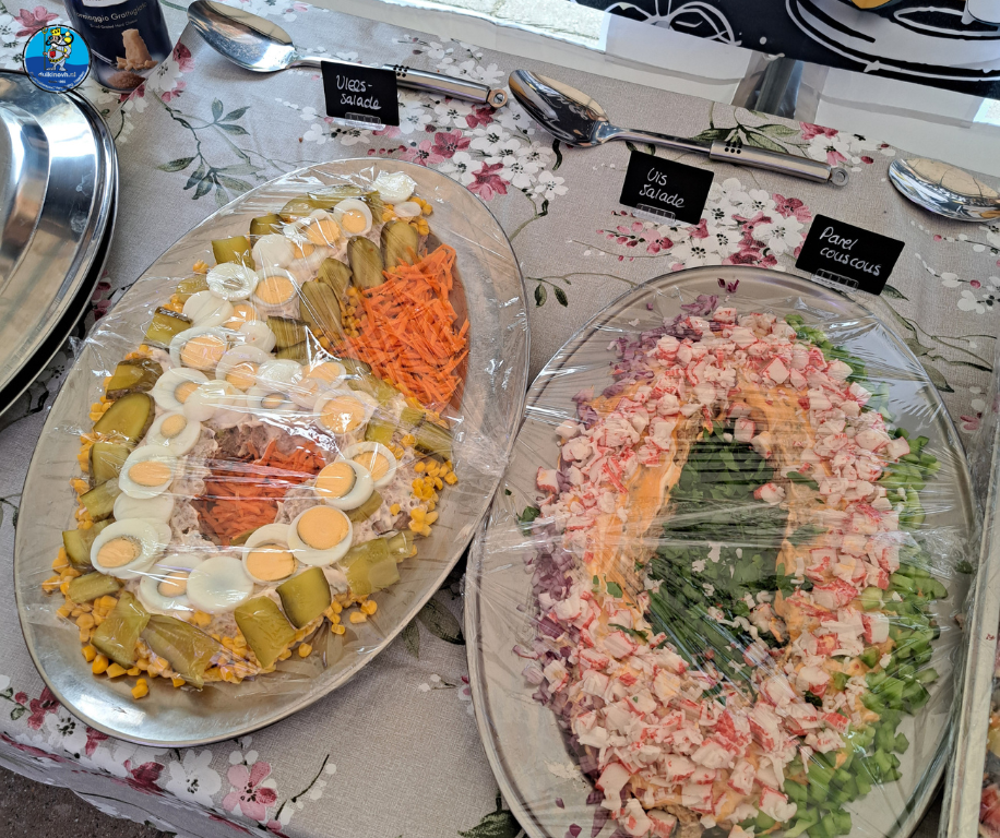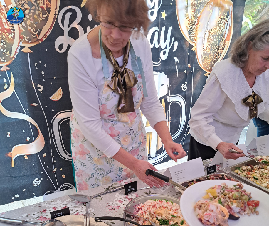 Het eten was ook erg goed, bedankt Thea en Alex voor jullie vele werk. Gelukkig konden we niet zelf opscheppen anders zou het een chaos zijn geworden. Nu stonden we keurig in de rij te wachten tot de dames van de catering (die met die leuke gouden sjaaltjes) voor iedereen had opgeschept. Er was meer dan genoeg en halverwege de avond kregen we ook nog een ijsje, top!